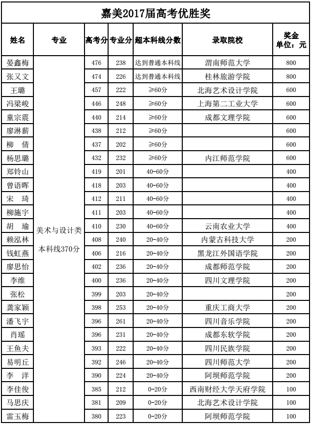根据嘉美艺考文化冲刺奖学金若干规定,现对艺考文化冲刺班在2017